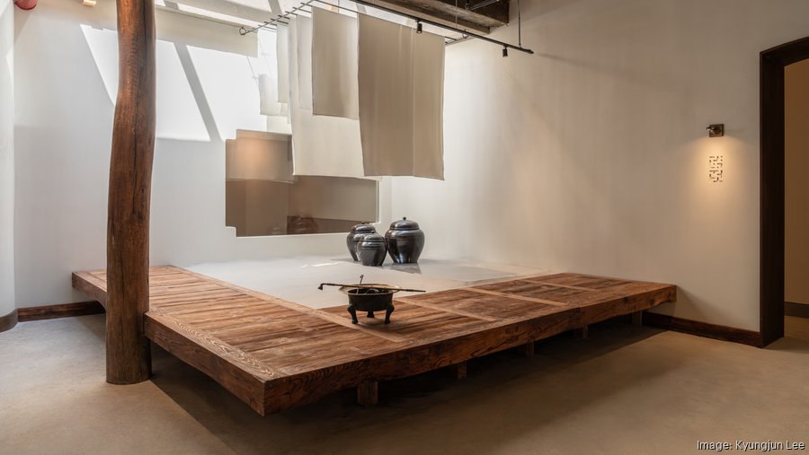 - A freight elevator ride to a 16th-floor dining room that nods to a hanok, minimalist, calm, with skyline views.