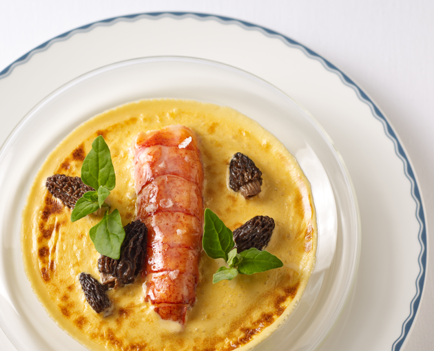 Maine Lobster: Featured in the signature Maine Lobster Thermidor, the lobster tail is poached and combined with morels, Gruyere cheese, white wine, sherry, and cognac, served in a puff pastry shell. This ingredient highlights luxury and refinement by the sea.